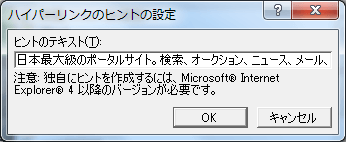 - [ハイパーリンクのヒントの設定]ダイアログボックスで、そのリンクの説明を入力して [OK]ボタンをクリックします。