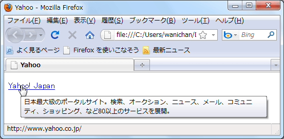リンク部分にヒント設定を行う