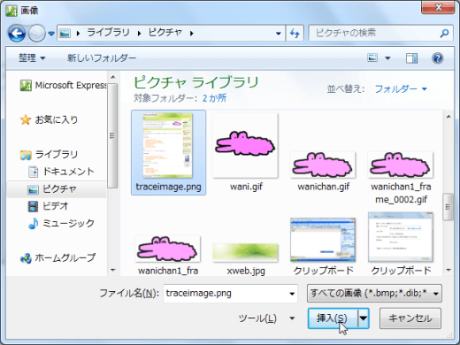 - トレース用イメージを選択して[挿入]ボタンをクリックします。