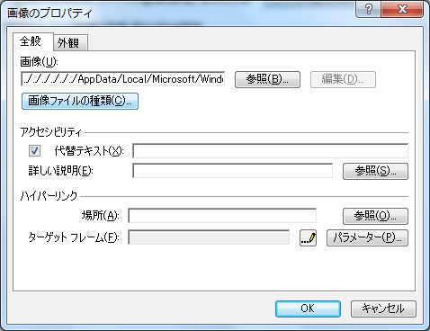 - 対象となる画像をダブルクリックして、[画像のプロパティ]ダイアログボックスを表示します。