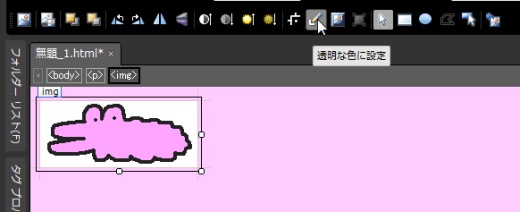背景色を透過するには、[画像]ツールバーの[透明な色に設定]ボタンを利用して、透明にしたい色を選択します。ただし、その画像がGIFイメージである必要があります。