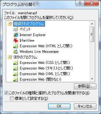 - 以降、そのソフトウェアで編集する場合は、[プログラムから開く]ダイアログボックスの[標準として設定する]チェックボックスをオンにして[OK]ボタンをクリックします。