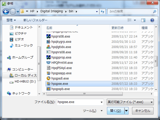 - [プログラムから開く]ダイアログボックスの[参照]ボタンをクリックします。