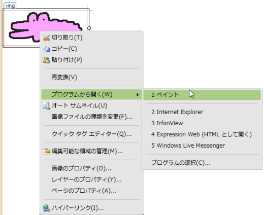- Expression Webに切り替えると、ペイントで編集した内容が画像に反映されます。
