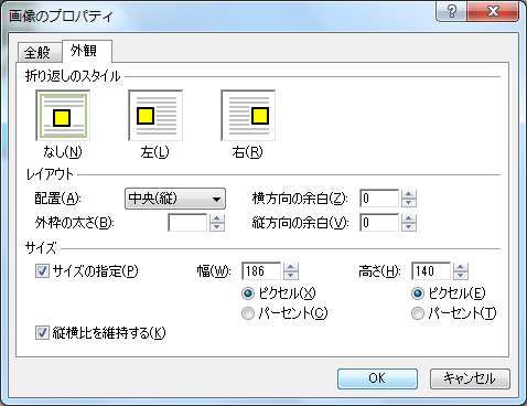 以下のオプションを設定することで、テキストに対しての画像の配置方法を調整できます。