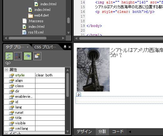 画像の周りがテキストが折り返されている場合、ある時点でテキストの折り返しを解除するには、CSSのclearプロパティを利用します。