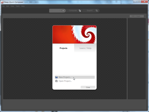 - Deep Zoom Composer が起動したら、[New Project]をクリックします。