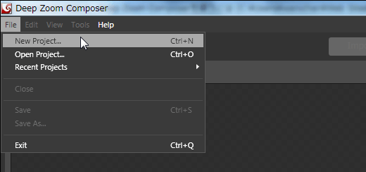 Deep Zoom画像を作成するには、プロジェクトを作成する必要があります。以下のいずれかの方法で行えます。
