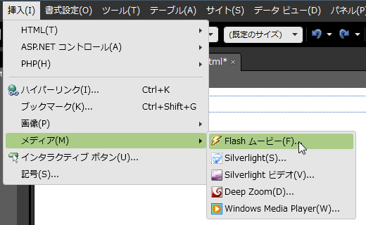 [挿入]メニューを使ってFlash SWF ファイルを挿入する