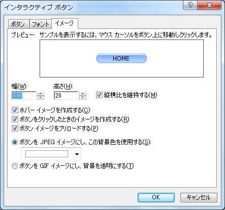 なお、既定のボタンはJPEGイメージですが、GIFイメージに変更することも可能です。変更した後、別のインタラクティブボタンの素材ファイルが生成されます。