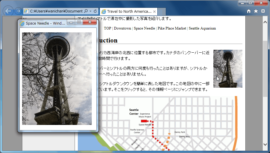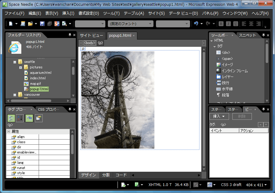 - あらかじめ指定されたサイズで開くブラウザーのウィンドウに表示するWebページに画像を挿入して、準備しておきます。