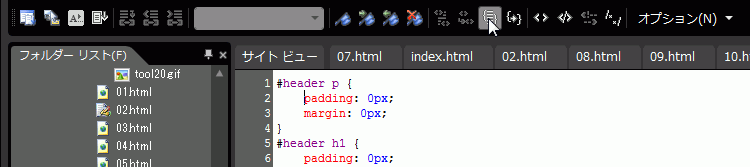 コードビューツールバーを利用する