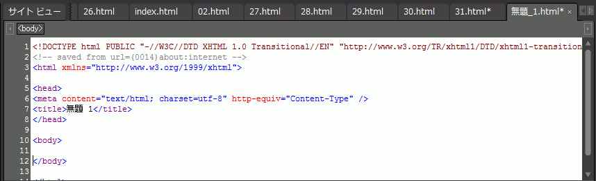 - HTMLタグの前行に
