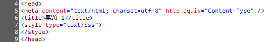 - </style>の前にカーソルを移動してEnterキーで改行します。