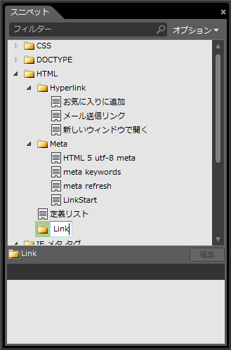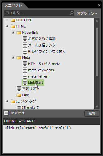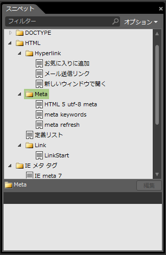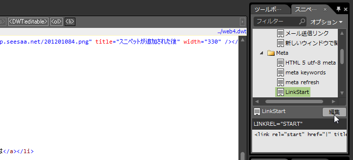 - 変更したいスニペット選択して、スニペットパネルの[編集]ボタンをクリックします。