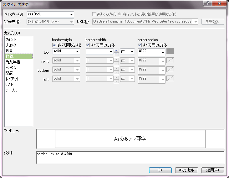 RSSフィードの枠線の色を変えるには