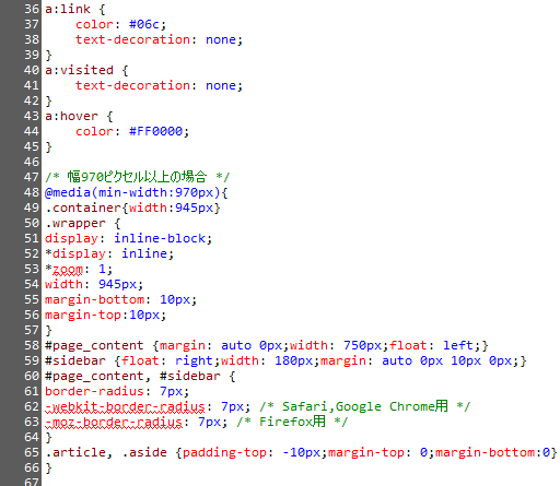 #page_content は左側に配置(float:left)、#sidebar は右側に配置(float:right)にして、それぞれ角丸スタイルにしています。角丸スタイルはCSS 3の一種なので古いバージョンでは表現できませんが、スタイル上の問題なので私は特に気にしていません。