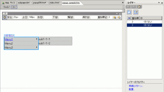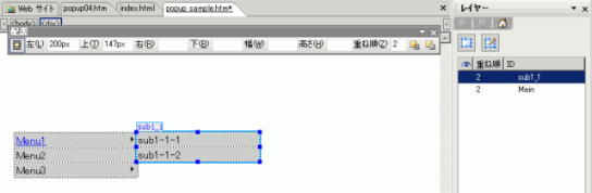 メインメニューのIDに「Main」、サブメニューには「sub1_1」と指定します。