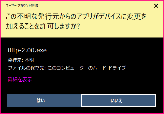 - ユーザーアカウント制御画面が表示されたら[はい]ボタンをクリックします。