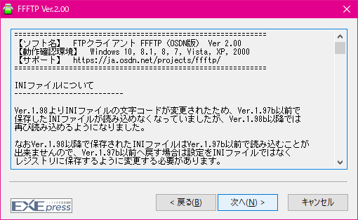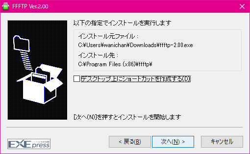 ダウンロードフォルダーに保存されたインストールファイルをダブルクリックして、FFFTPをインストールしてみましょう。