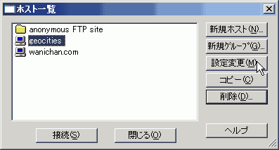 - ホスト一覧の中から設定されたホストを選び、[設定変更]ボタンをクリックします。