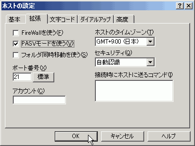 - 「PASVモードを使う」にチェックを付けて、OKボタンをクリックします。