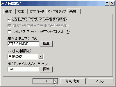 - 「LISTコマンドでファイル一覧を取得」にチェックを入れて、OKボタンをクリックします。
